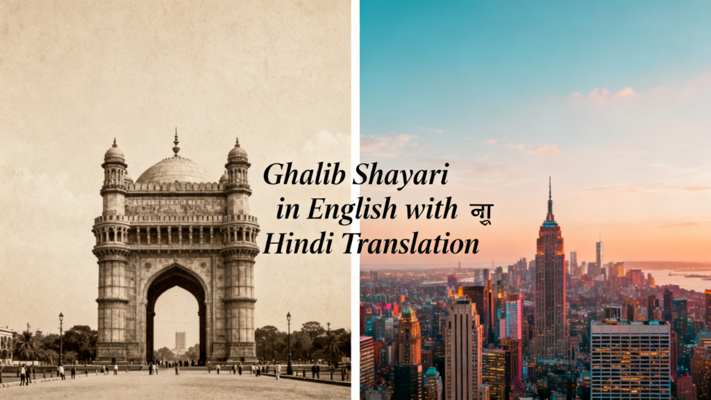 Ghalib Shayari in English with Hindi Translation lets you enjoy the timeless beauty of Mirza Ghalib’s poetry even if you don’t read Urdu. Each sher captures love, heartbreak, longing, and life’s deeper truths. With English lines paired with easy-to-understand Hindi translation, these shayari are perfect for sharing on social media or reflecting personally.